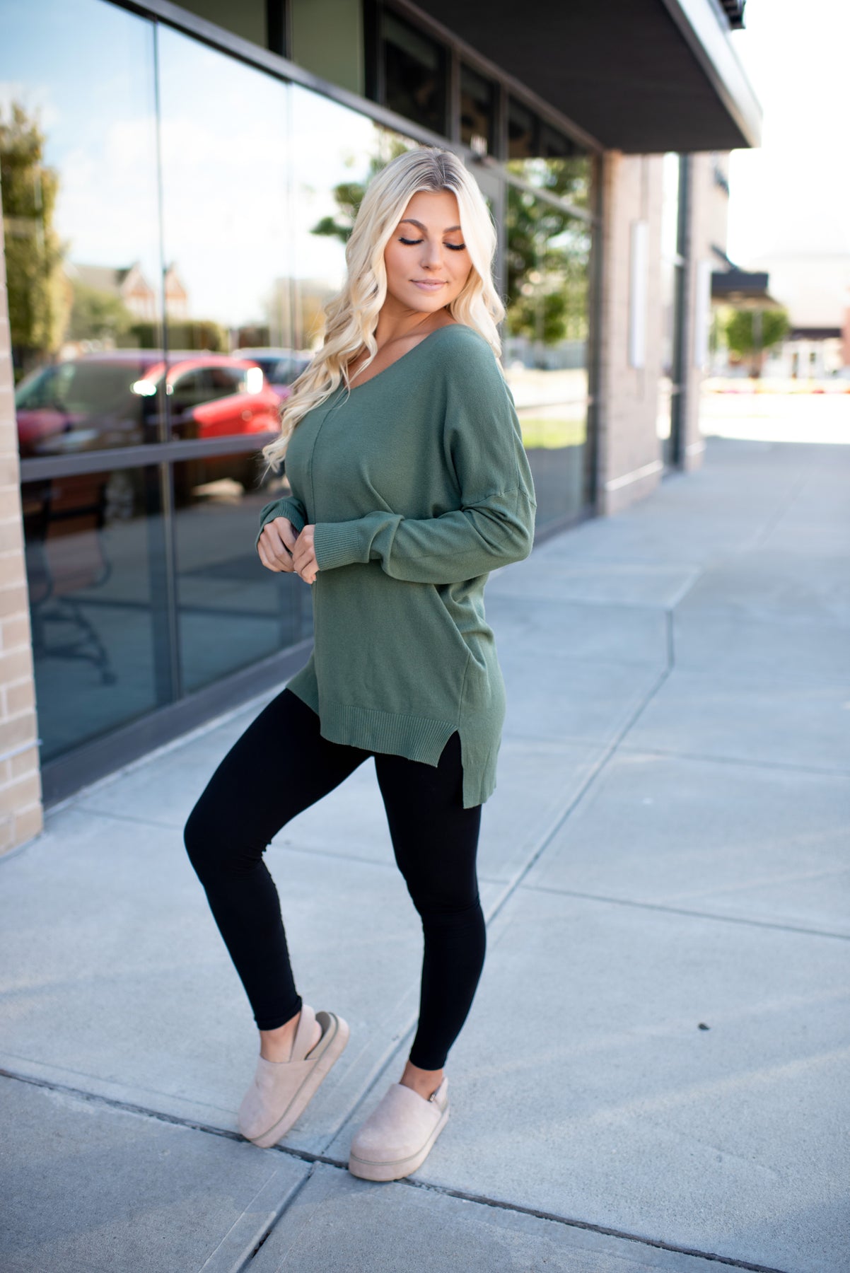 We are in love with this super soft tunic sweater made from a cashmere-like fabric! It is perfect for fall and features a slight v-cut neckline, relaxed fit, high-low bottom hemline, and ribbed detail around the sleeve cuffs and hemline! Pairs perfectly with leggings or denim, and layers well under a vest or blanket scarf! You will want one in every color!