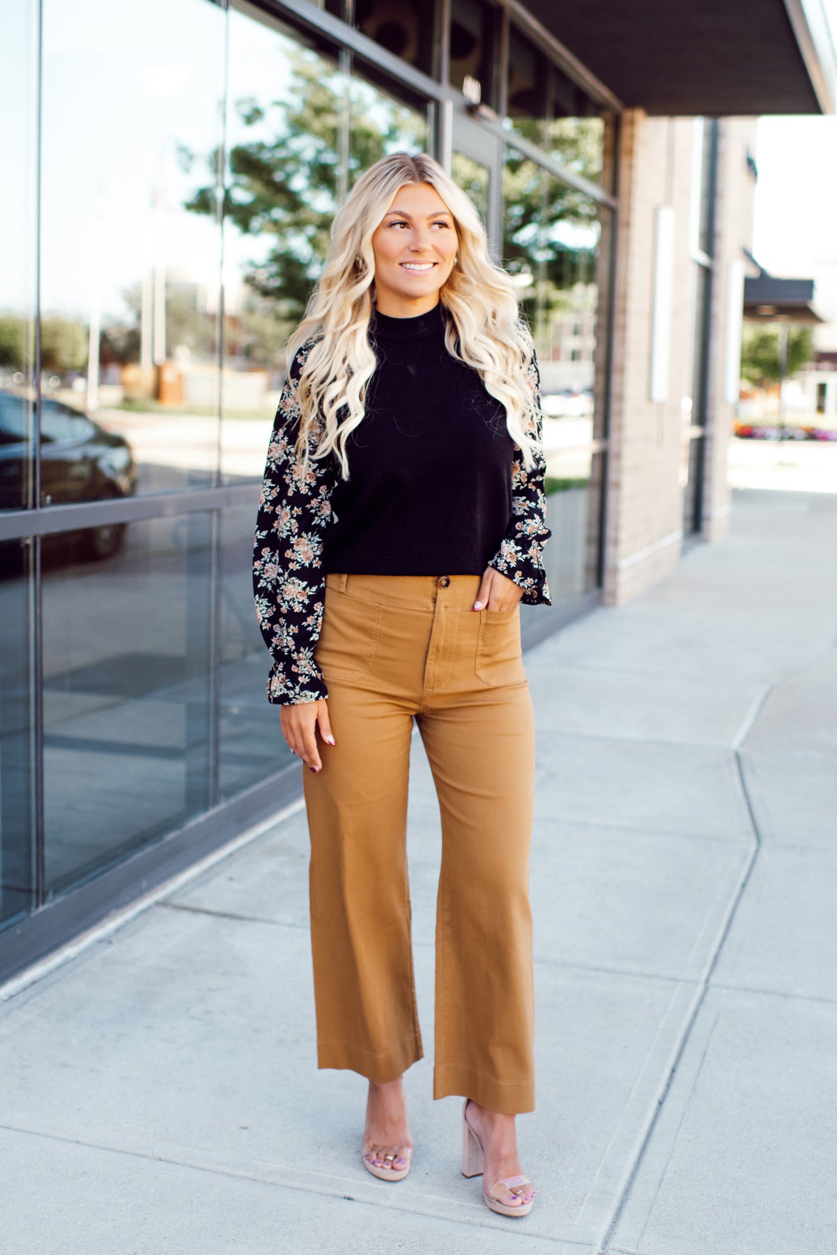 These high-waist cropped wide-leg pants bring a fun twist to your wardrobe! Featuring a flattering high-rise waist with belt loops, they let you cinch your look just right. The front and back patch pockets add casual charm and practicality. With a breezy cropped wide-leg fit and secure zipper and button closure, they’re perfect for playful days and stylish outings alike.