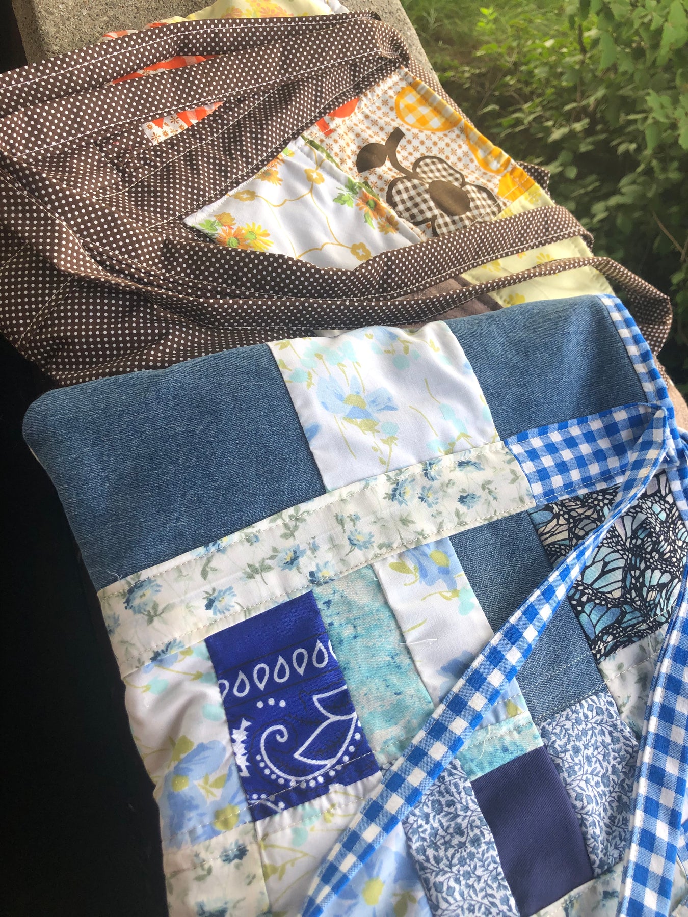 Patched with love and a huge stash of vintage fabric! Two strap handles, self tie closure, and large outside pocket. OOAK handmade with love! Each piece has its own unique features. Straps vary in length could be tied to shorten. Please contact Brandy if you need any further information. Amightyoakacre@gmail.com