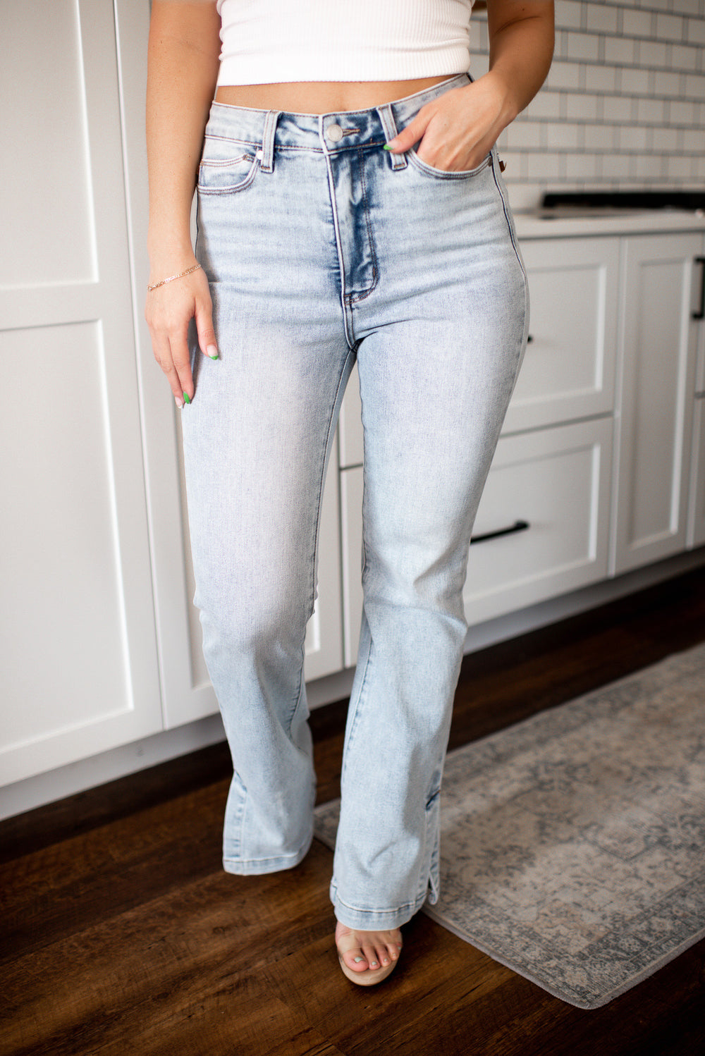 Judy Blue Bianca Flare Denim Jeans (Medium Wash)
