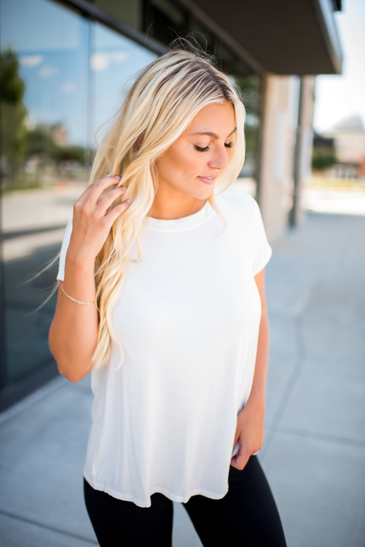 Meet your new favorite tee: the Easy Does It Tee in Ivory. With a round neck and flowy round hem, this short sleeve top combines classic neutrals with insane stretch and softness. It moves with you, feels like a dream, and adds effortless style to any outfit.